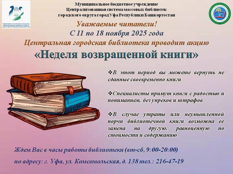 Внимание, любители чтения! Центральная городская библиотека проводит акцию «Неделя возвращённой книги»!