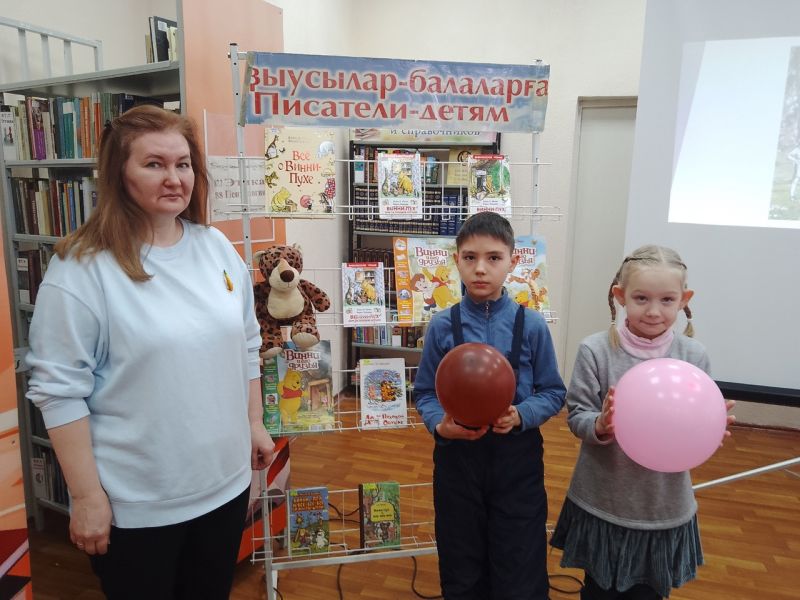 Скрасил мероприятие конкурс «Кто быстрее надует шар». В завершение дети посмотрели книги Алана Милна представленные на тематической выставке.