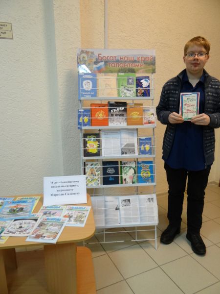 10 января в зале краеведческой литературы Центральной городской библиотеки Уфы прошел обзор книжной выставки «Богат наш край талантами», посвященный 75-летию писателя - сатирика, поэта, журналиста, общественного деятеля Марселя Салимова.