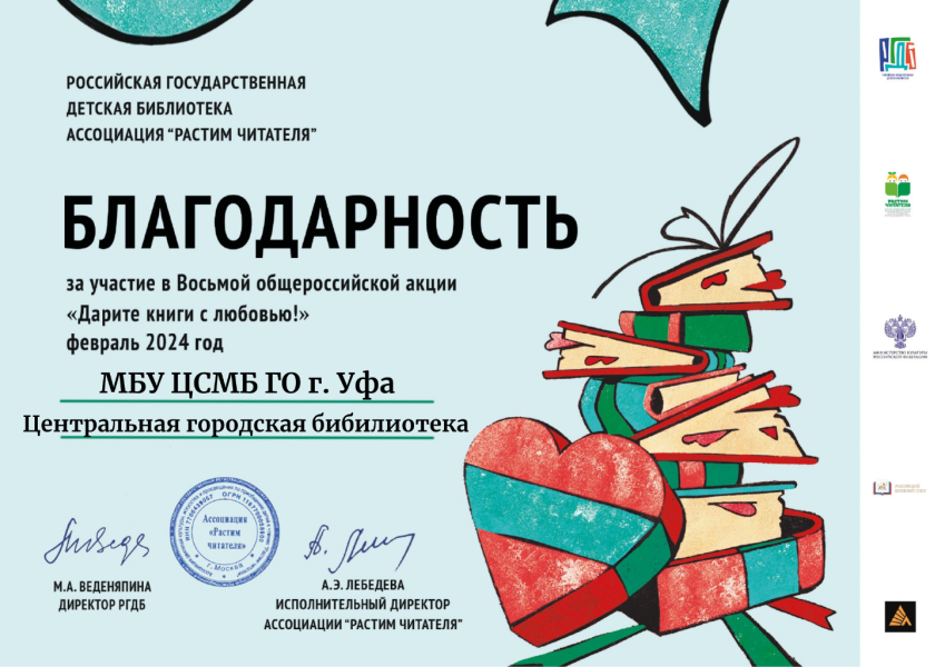 Центральная городская библиотека Уфы подвела итоги восьмой общероссийской акции «Дарите книги с любовью»
