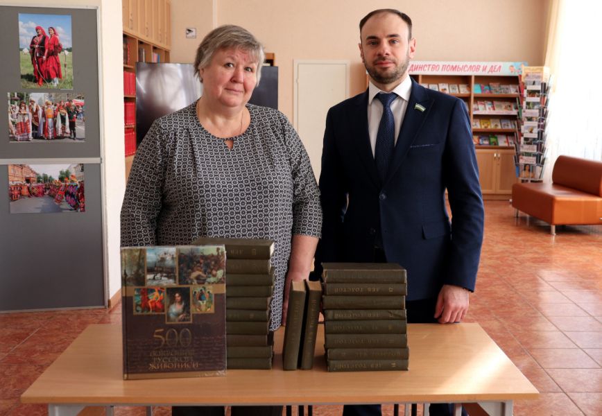 Александр Геннадиевич безвозмездно передал в дар книги из личной библиотеки. Наш фонд пополнился многотомником творчества выдающегося русского классика Льва Толстого и красочным изданием «500 сокровищ русской живописи».