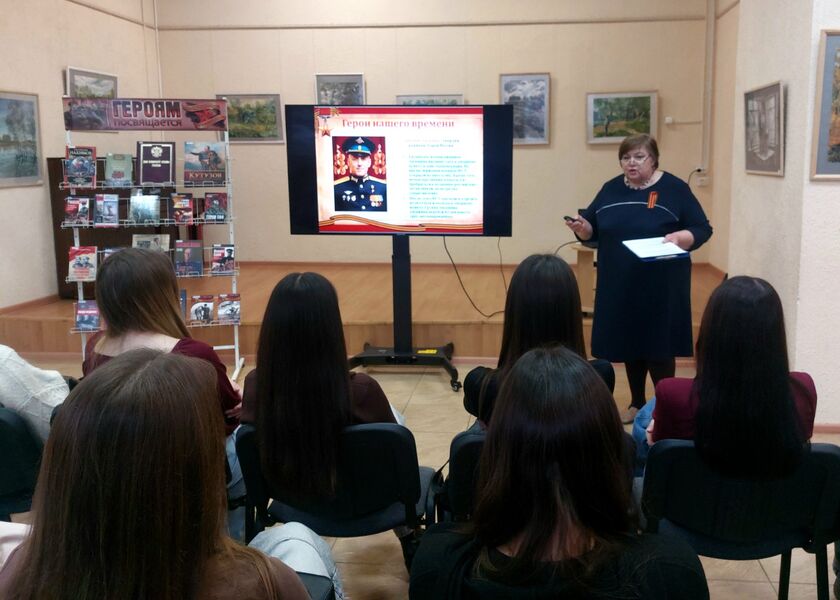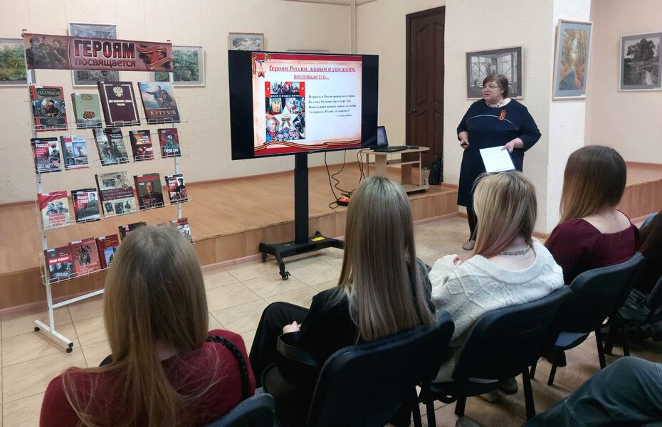В рамках Дня героев Отечества Центральная городская библиотека распахнула двери перед студентами первого курса Уфимского автотранспортного колледжа, пригласив их на час мужества «Героев славных имена».