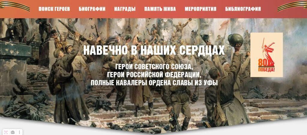 В рамках подготовки к празднованию 80-летия Победы обновлена главная страница портала, которая оформлена к новой дате. Информация на портале постоянно дополняется и обновляется. Цель портала остается прежней: предоставить возможность получить на одном портале информацию о героях Отечества, которые были связаны рождением, трудовой деятельностью, жизненными обстоятельствами со столицей Башкортостана городом Уфой.