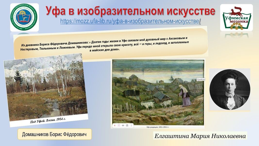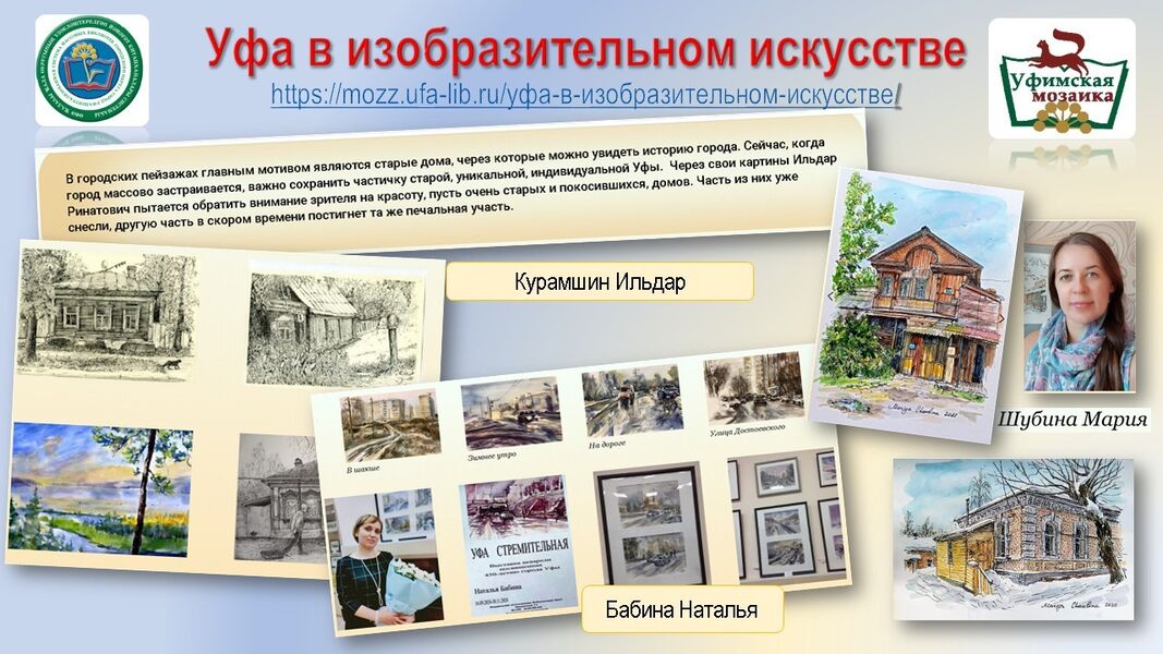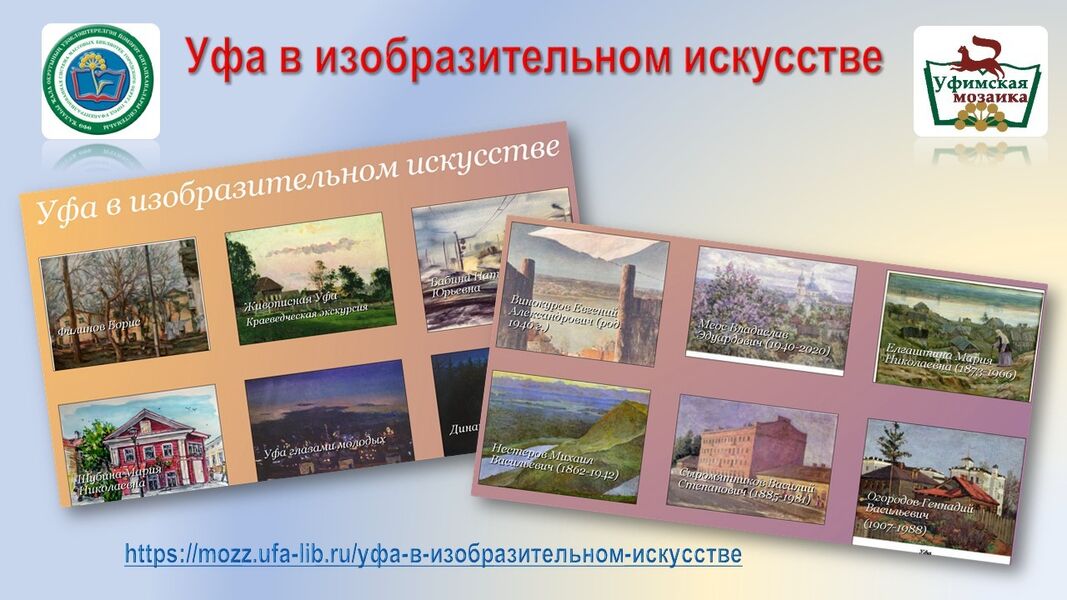 Более подробно о художниках и их творчестве можно узнать на страницах раздела «Уфа в изобразительном искусстве» - https://mozz.ufa-lib.ru/уфа-в-изобразительном-искусстве/.