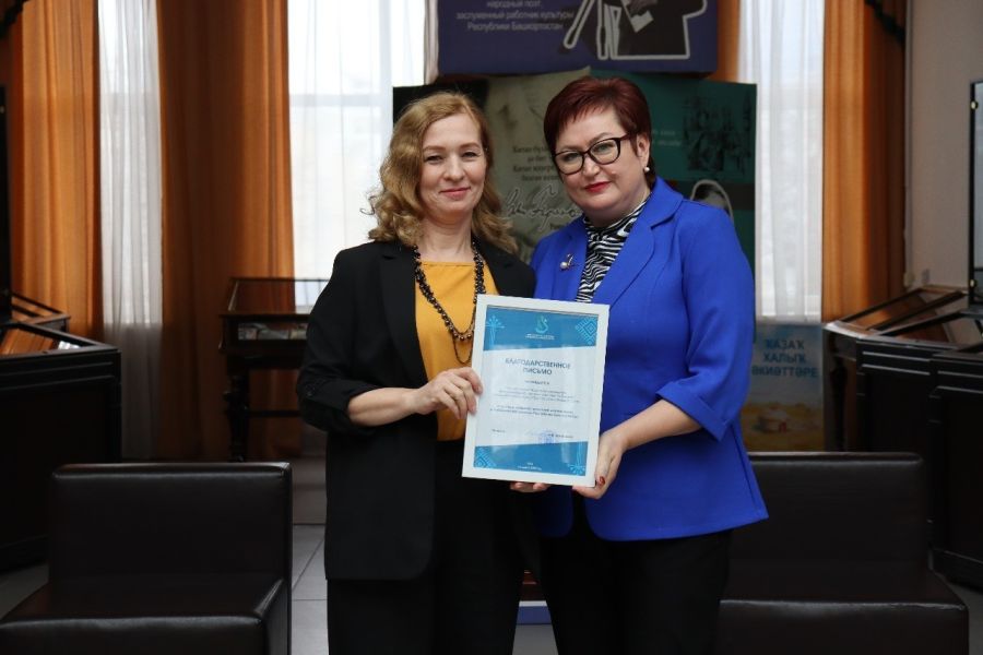 Директорам районов и городов Башкортостана были вручены Благодарственные письма Министерства культуры Республики Башкортостан за продвижение опыта Республики Башкортостан в библиотечной отрасли в Российской Федерации и за активную культурно-образовательную деятельность и патриотическую работу.