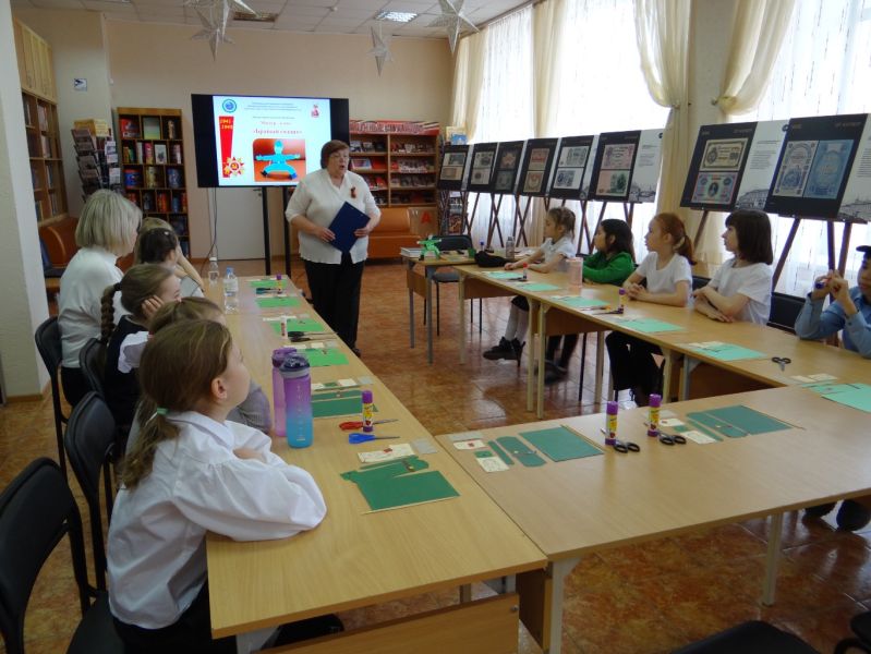 После рассказа библиотекаря дети смастерили из цветной бумаги и картона, деревянных палочек подвижную игрушку: бравого танцующего солдата, защитника Отечества.