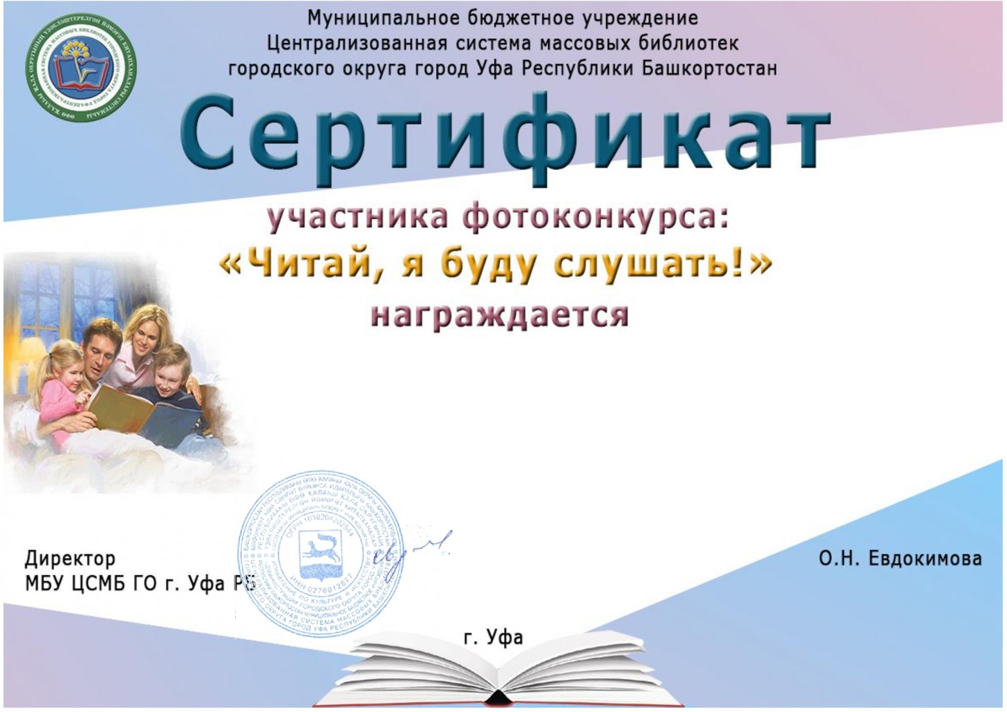 С 15 июня по 10 августа 2021 года в Уфе проходил фотоконкурс семейного чтения «Читай, я буду слушать!», посвященный Дню семьи, любви и верности.