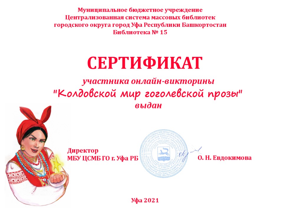 Завершилась онлайн-викторина «Колдовской мир гоголевской прозы», посвященная 190-летию выхода в свет сборника повестей «Вечера на хуторе близ Диканьки» великого русского писателя Н.В. Гоголя.