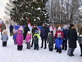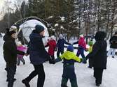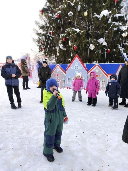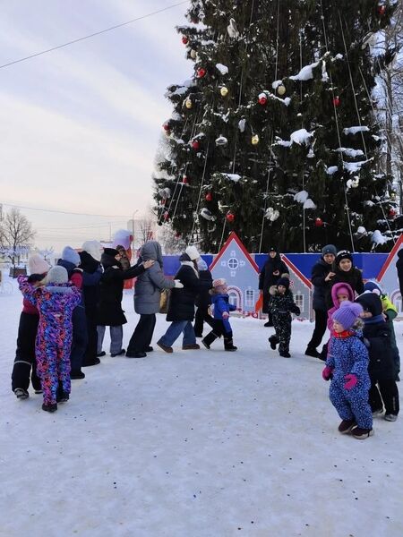 Погода благоволила празднику, и взрослые с детьми с удовольствием участвовали в активностях на свежем воздухе. Центром притяжения, конечно, была нарядно украшенная живая ель, вокруг которой разворачивалось всё действие. В программе мероприятия были подвижные игры, викторины, танцы.
