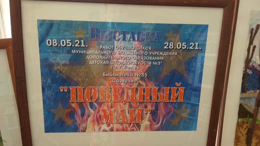 В модельной библиотеке № 35 состоялось открытие выставки работ обучающихся Детской школы искусств № 3 «Победный май», посвященная 76 годовщине Великой Победы.