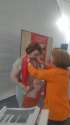 Главный библиотекарь методического отдела Центральной городской библиотеки Анастасия Александровна Тукумбетова, как раз написавшая Диктант на твердую пятерку, получила заслуженную медаль из рук автора текста - Российской писательницы Марины Москвиной.