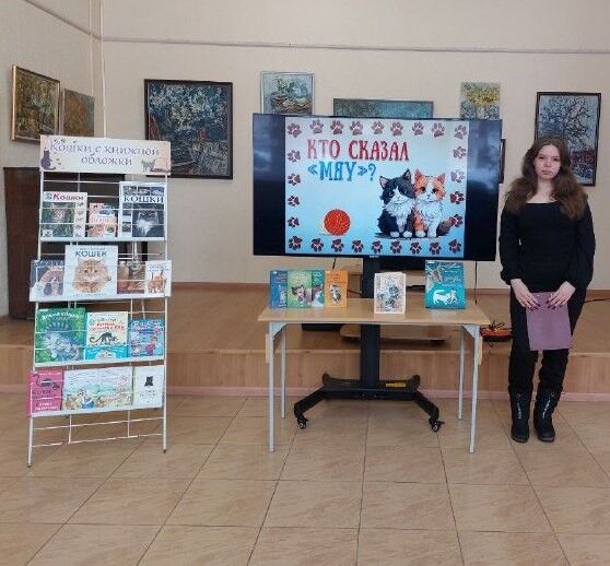 Также ребятам провели обзор книжной выставки «Кошки с книжной обложки». На выставке была представлена литература об уходе за питомцами и их воспитании. Кроме того, здесь можно было найти художественные произведения разных авторов, посвященные этим удивительным животным.