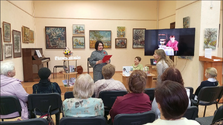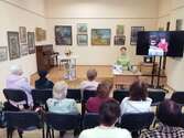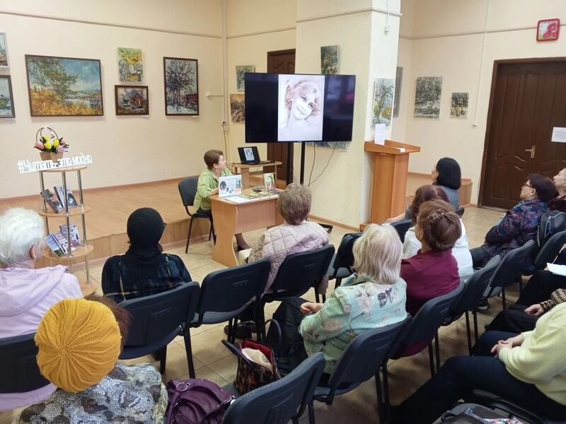 Во время рассказа о сюжете и ключевых мотивах произведения на экране демонстрировалась тематическая презентация. Визуальные образы –исторические фотографии, эскизы костюмов эпохи, пейзажи, отражающие места действия романа помогли глубже погрузиться в атмосферу книги и лучше понять замысел автора. Особый эмоциональный акцент был создан благодаря фрагменту аудиозаписи с настоящим голосом певицы, ставшей прообразом главной героини (Надежды Плевицкой). Звучание её голоса, наполненное глубиной и силой, буквально оживило страницы романа и позволило гостям почувствовать связь между исторической реальностью и художественным вымыслом. Этот момент вызвал живой отклик у публики: как звучание подлинного голоса помогло ярче представить образ Аси и проникнуться ее историей.