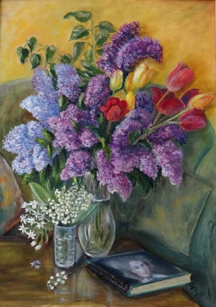 Пробовала себя в разных техниках: пастель, карандаш, акварель, но предпочтение отдает работе маслом.