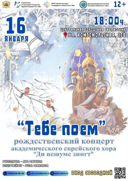 Рождество Христово в Русской православной церкви - один из главных христианских праздников, уставленный в честь рождения Иисуса Девой Марией в городе Вифлиеме, положившего начало современному летоисчислению. Официально Рождество Христово отмечается 7 января и является нерабочим днем в России. В честь рождения Иисуса, всюду широко проводились торжества. Было написано множество духовных песен, театрализованных представлений. Устраивались уличные игры и гуляния, наряжались хвойные деревья, водились хороводы. Академический еврейский хор «Ди нешуме зингт», в переводе «Душа поёт», исполнит несколько Рождественских сочинений русских и западных композиторов, а также популярные песни из кинофильмов.