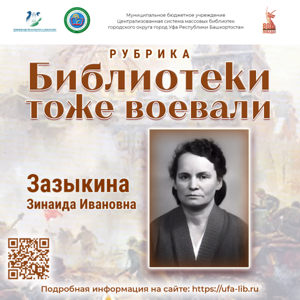 Зазыкина (Иванова) Зинаида Ивановна (1920 - 1989) – главный библиотекарь Государственной Публичной библиотеки. Родилась в Псковской области в семье крестьян. Окончив среднюю школу, поступила на курсы библиотечного дела при Ленинградской библиотеке. В 1940 году зачислена библиотекарем 2-го разряда в отдел каталогизации.