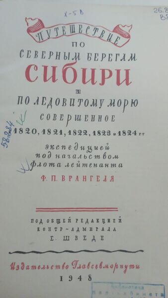 Фонд редких книг представляет книгу Ф. П. Врангеля «Путешествие по северным берегам Сибири и по Ледовитому морю», 1948 года издания. Впервые книга была напечатана в 1841 году, и, по общему признанию, стала выдающемся явлением в географической литературе. В Англии успех книги был настолько велик, что первое издание немедленно разошлось и потребовалось напечатать второе издание. Большим успехом книга пользовалась во Франции. В России труд Ф.П. Врангеля был переиздан лишь в 1948 году.