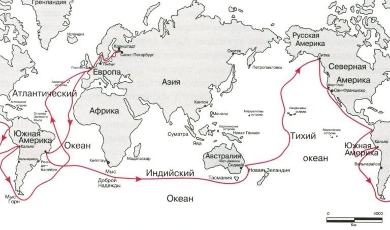 Из Кронштадта судно уходит тихо и без пафоса – Лазарев вообще не любит шумных празднеств. К апрелю 1814 года фрегат доходит до Рио-де–Жанейро, где русские моряки узнают про окончательный разгром Наполеона и вступление российской армии в Париж. Из Бразилии, обогнув Африку, судно движется в Австралию, а оттуда – пересекая огромный Тихий океан – в Русскую Америку, Лазарев зимует там, а на следующий год возвращается в Россию.