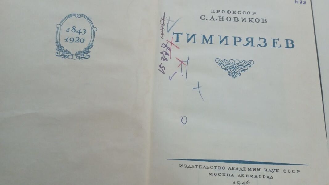 Фонд редких книг представляет книгу Сергея Новикова «Тимирязев», которая была выпущена Академией наук СССР в 1946 году. Это биография известного русского ученого Климента Аркадьевича Тимирязева, написанная к столетию со дня его рождения.