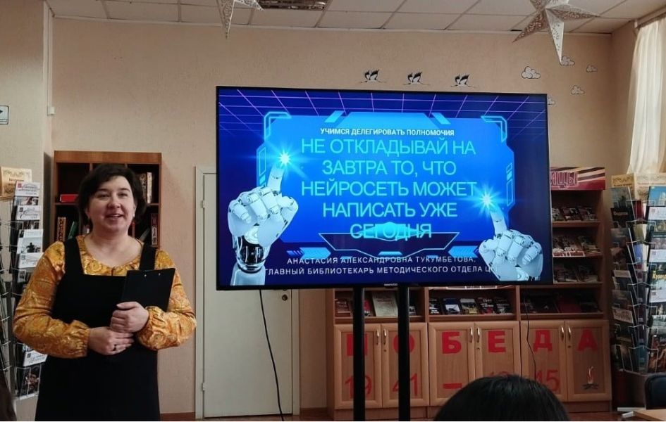 Следующей выступила Анастасия Александровна с темой «Не откладывай на завтра то, что нейросеть может написать сегодня». Ее доклад был посвящен использованию нейросетей, таких как GigaChat, в повседневной работе библиотекаря. Участники узнали, как современные технологии могут значительно упростить выполнение рутинных задач, такие как создание аннотаций, подбор литературы и даже написание статей. Эта тема вызвала живой интерес среди присутствующих, ведь возможности нейросетей действительно впечатляют!