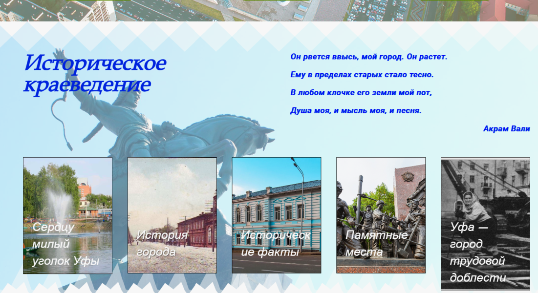 На краеведческом портале «Уфимская мозаика» в разделе «Историческое краеведение» создана новая особенная страница «Сердцу милый уголок Уфы» - https://mozz.ufa-lib.ru/