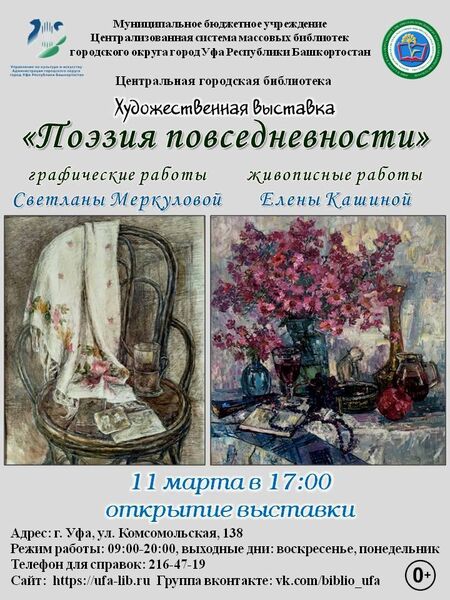 Центральная городская библиотека приглашает всех ценителей искусства на открытие выставки «Поэзия повседневности» талантливых художников Елены Кашиной и Светланы Меркуловой.