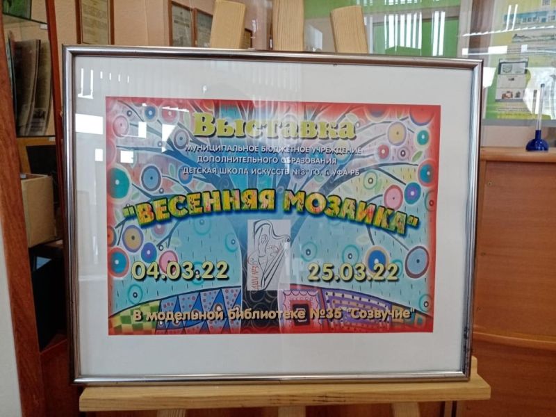 В модельной библиотеке №35 «Созвучие» открылась выставка детских рисунков «Весенняя мозаика» Детской школы искусств №3.