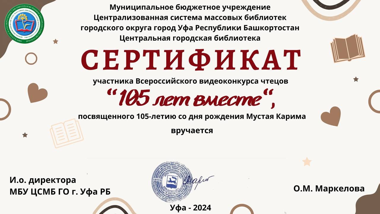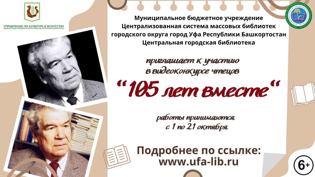 С 1 октября по 5 ноября 2024 года в Уфе проходил видеоконкурс чтецов «105 лет вместе», посвящённый 105-летию со дня рождения башкирского поэта, писателя и драматурга Мустая Карима.
