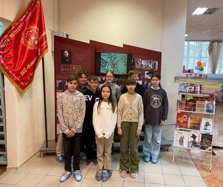 Гостями библиотеки стали учащиеся 6 класса школы «Солнечный круг» г. Уфы. Библиотекарь Юлия Садриева, с помощью презентации рассказала ребятам о биографии и боевом пути Минигали Шаймуратова.