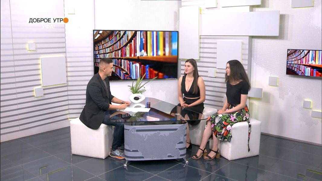 В честь дня книголюбов библиотекари модельной библиотеки №31 посетили телепередачу "Доброе утро, Уфа!". В рамках просветительской деятельности ведущий задавал вопросы, связанные с работой в библиотеке.