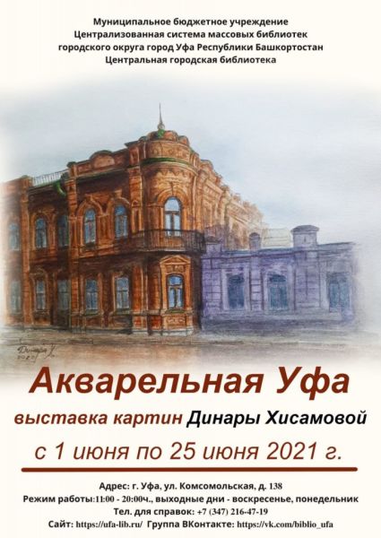 1 июня в выставочном зале Центральной городской библиотеки г. Уфы открылась художественная выставка «Акварельная Уфа» уфимской художницы Динары Хисамовой.