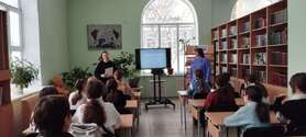 Урок мужества «Город в стальном кольце» был организован для учащихся гимназии сотрудниками библиотеки №49. Библиотекарь рассказала ребятам об осаждённом Ленинграде, который во время Великой Отечественной войны пережил самые страшные, трагические годы за всю историю своего существования.