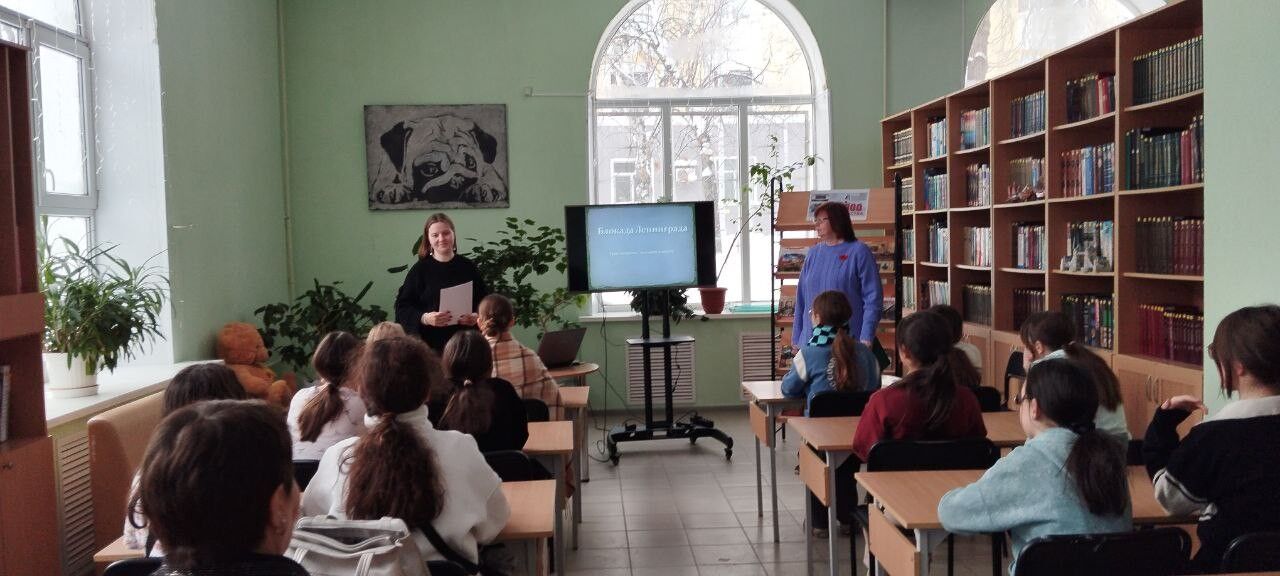 Модельная библиотека №4 организовала для школьников час истории «Жизнь в блокадном городе». Библиотекарь поведала о той суровой поре для жителей Ленинграда, когда город был окружён врагом, и люди умирали от страшного голода и холода.